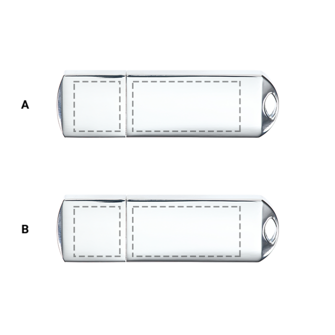 Powierzchnia przeznaczona do personalizacji zależy od modelu pamięci USB. Największe pole zadruku posiada pamięć w kształcie karty kredytowej Thunder. Dokładnie wymiary powierzchni do znakowania znajdują się w pełnej specyfikacji produktów.