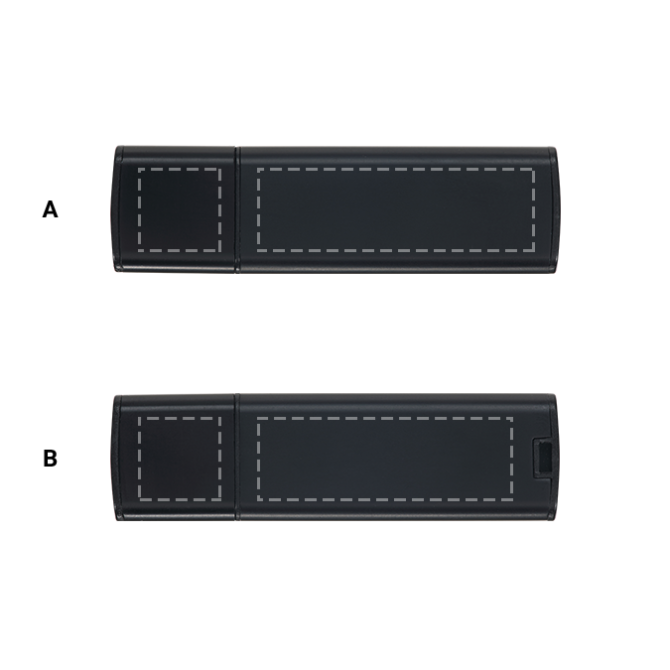 Powierzchnia przeznaczona do personalizacji zależy od modelu pamięci USB. Największe pole zadruku posiada pamięć w kształcie karty kredytowej Thunder. Dokładnie wymiary powierzchni do znakowania znajdują się w pełnej specyfikacji produktów.
